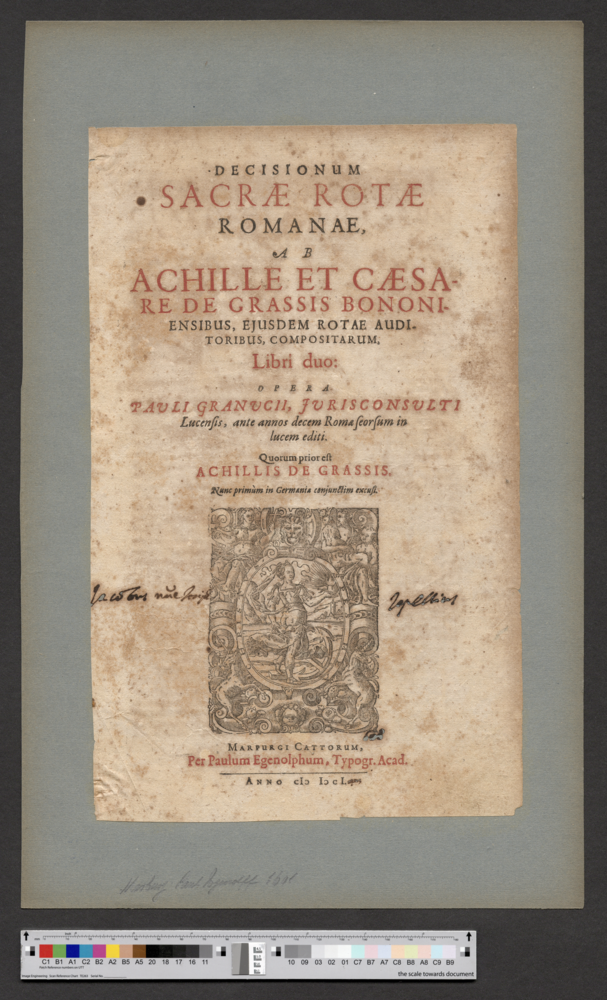 - MARPURGI CATTORUM, / Per Paulum Egenolphum, Typogr. Acad. / ANNO clↄ lↄ cl.