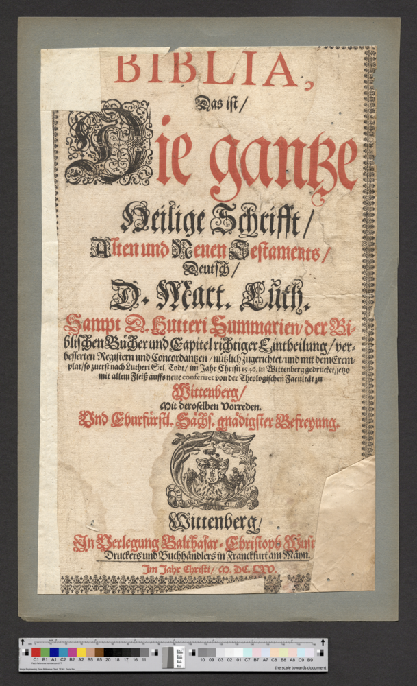 - Wittenberg / In Verlegung Balthasar=Christoph Wust / Druckers und Buchhändlers in Franckfurt am Mäyn. / Im Jahr Christi / M. DC. LXV.