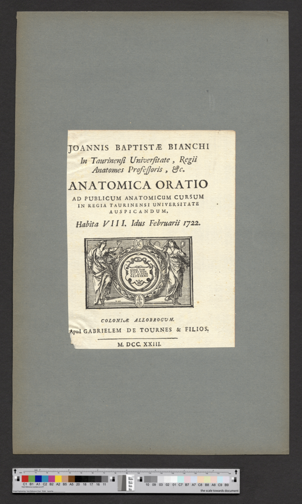 - COLONIAE ALLOBROGVM. / Apud GABRIELEM DE TOURNES & FILIOS. / M. DCC. XXIII.