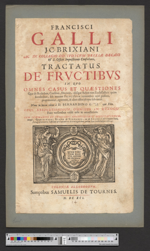 - COLONIAE ALLOBROGVM, / Sumptibus SAMUELIS DE TOURNES. / M. DC. XCI.