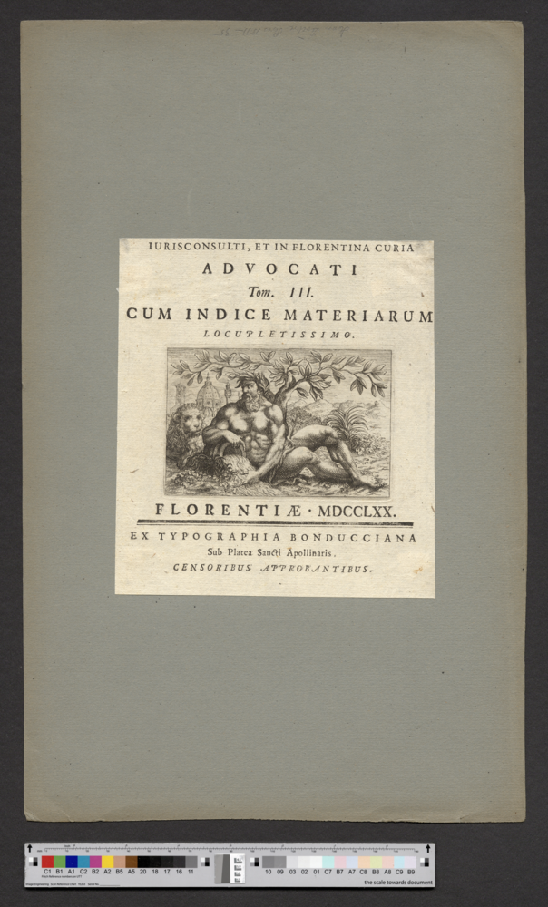 - FLORENTIAE • MDCCLXX. / EX TYPOGRAPHIA BONDUCCIANA / Sub Platea Sancti Apollinaris.