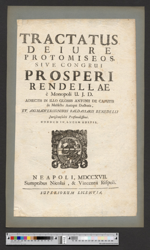 - NEAPOLI, MDCCXVII. / Sumptibus Nicolai, & Vincentii Rispoli. / SUPERIORUM LICENTIA.