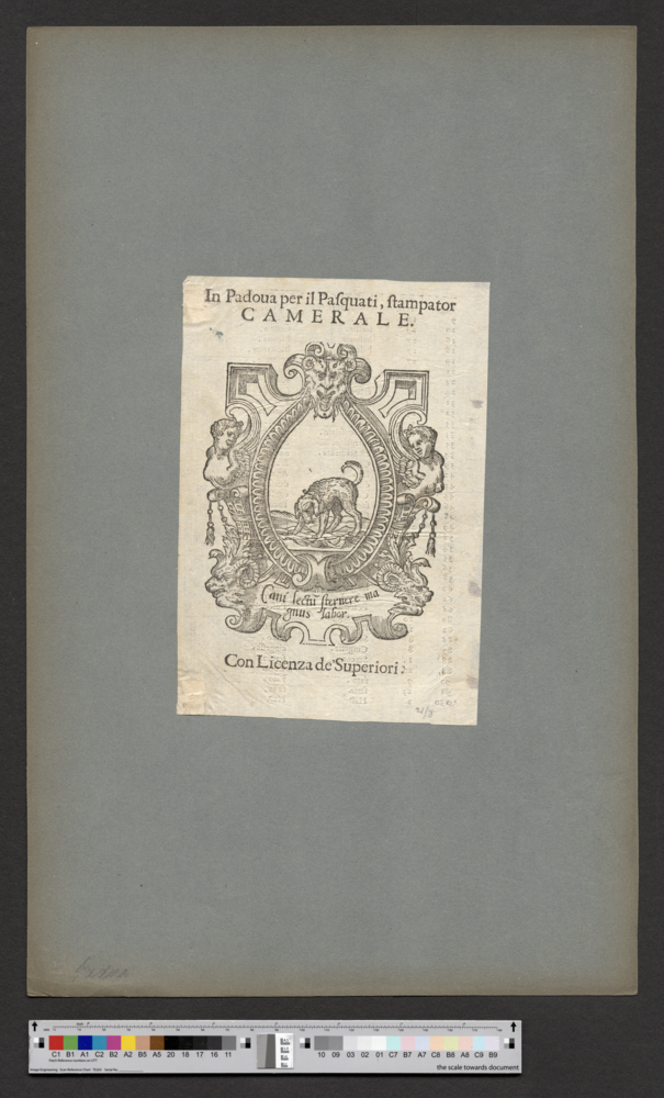 - In Padoua per il Pasquati, stampator/ CAMERALE. / Con Licenza de' Superiori.