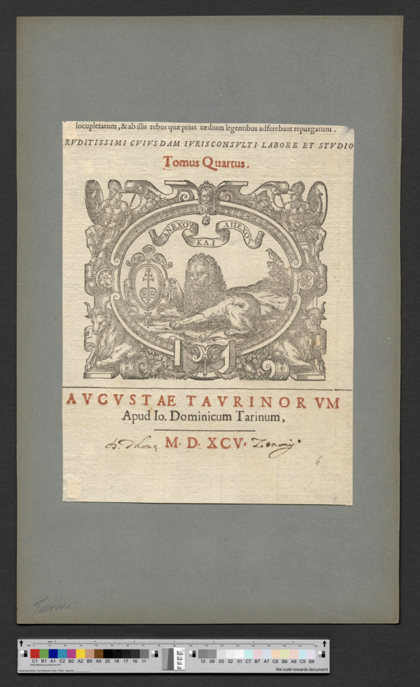 - AVGVSTAE TAVRINORVM / Apud Io. Dominicum Tarinum, / M· D· XCV·