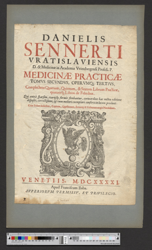 - VENETIIS, M. D. C. XXXXI. / Apud Franciscum Baba. / SVPERIORVM PERMISSV, ET PRIVILEGIO.