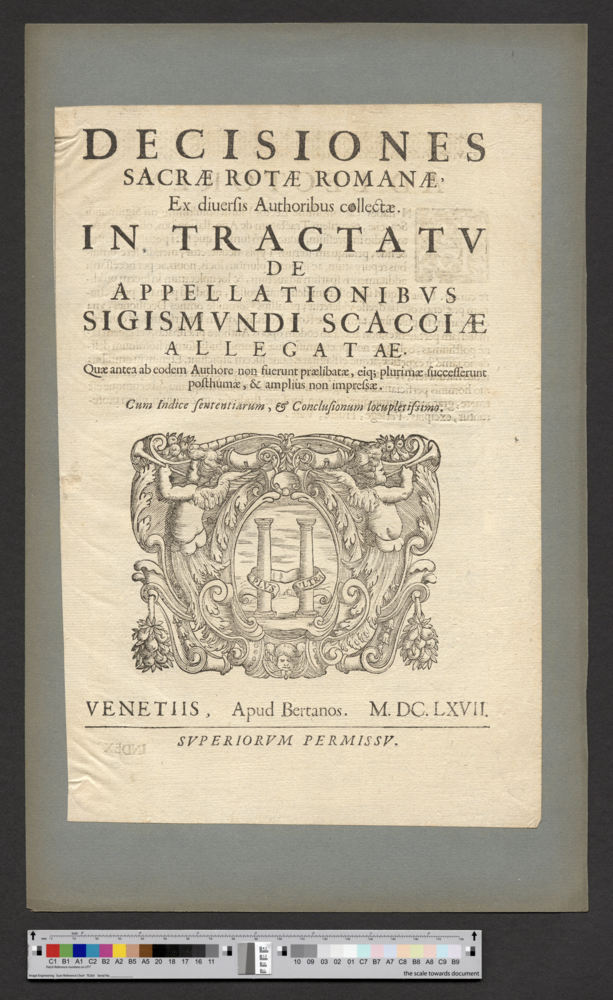 - VENETIIS, Apud Bertanos. M. DC. LXVII. / SVPERIORVM PERMISSV.