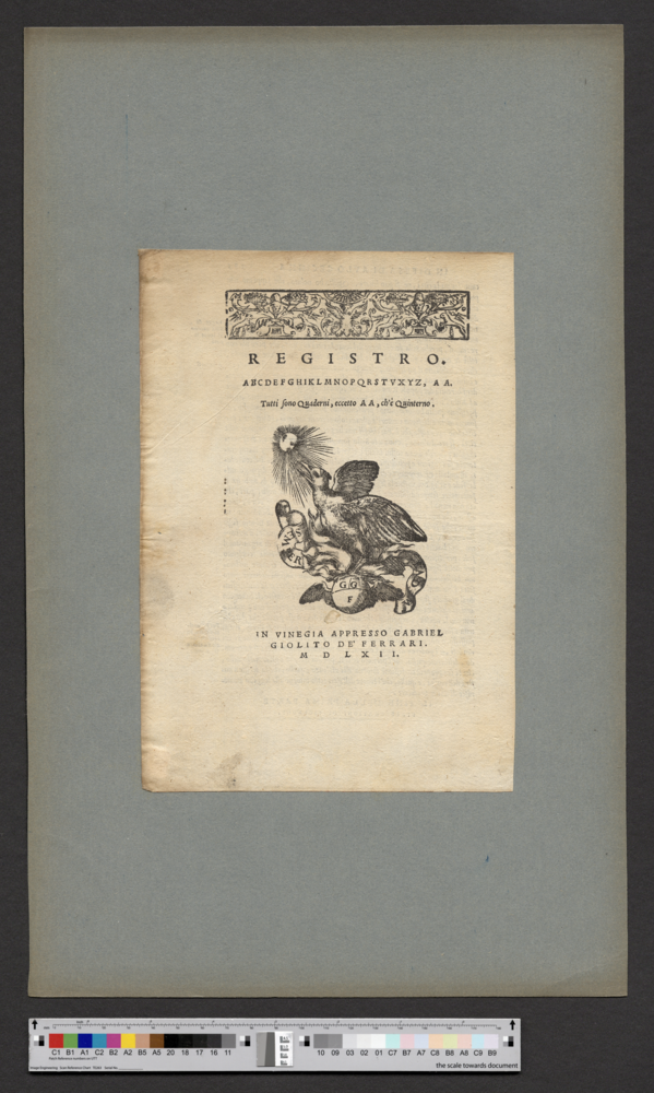 - IN VINEGIA APPRESSO GABRIEL / GIOLITO DE' FERRARI. / M D L X I I.
