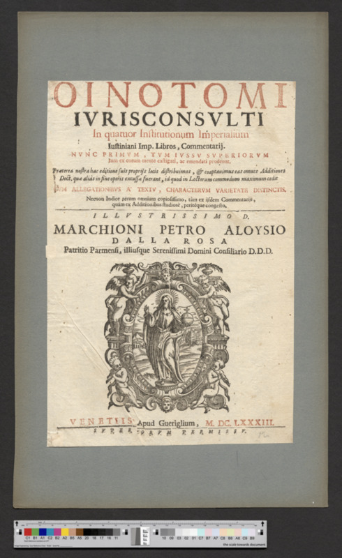 - VENETIIS, Apud Gueriglium, M. DC. LXXXIII. / SVPERORVM PERMISSV.