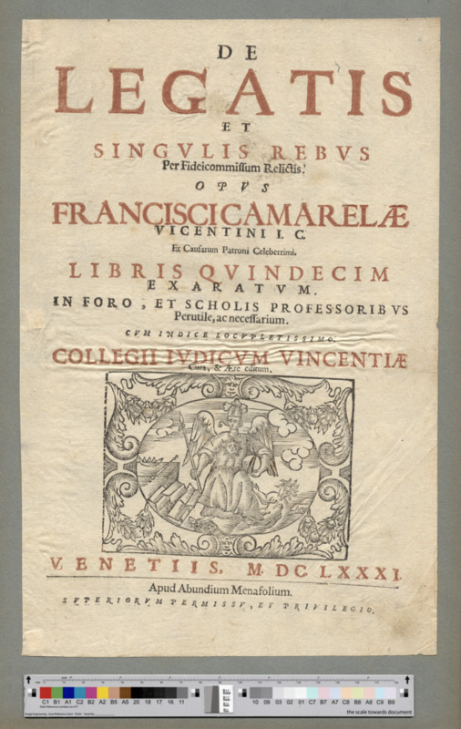 - VENETIIS, M. DC. LXXXI. / Apud Abundium Menafolium. / SVPERIORVM PERMISSV, ET PRIVILEGIO.
