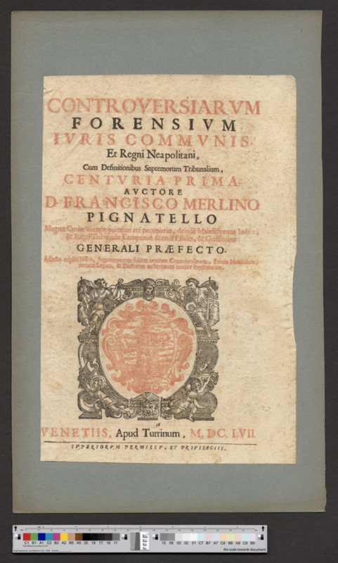 - VENETIIS, Apud Turrinum, M. DC. LVII. / SVPERIORVM PERMISSV, ET PRIVILEGIIS.