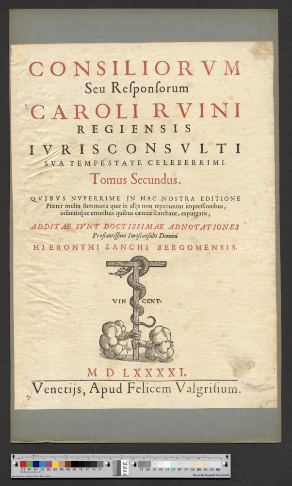 - M D LXXXXI. / Venetijs, Apud Felicem Valgrisium.