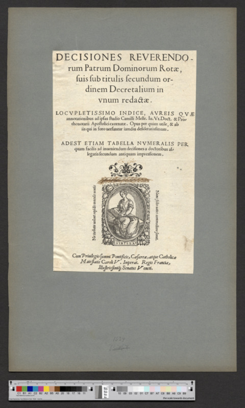 - "Cum Privilegio summi Pontificis, Caesareae, atque Catholicae / Maiestatis Caroli V. Imperat. Regis Franciae, / Illustrissimiq; Senatus Veneti."