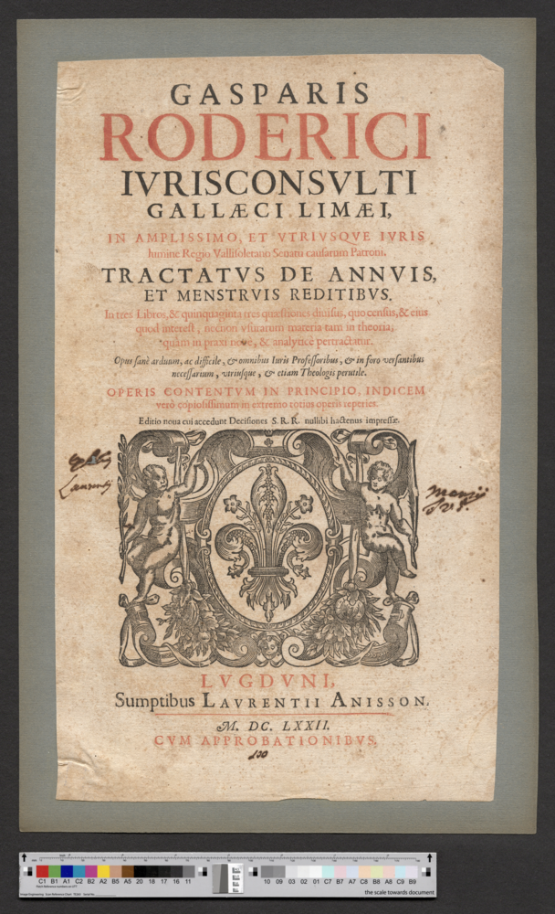 - LVGVNDI, / Sumptibus LAVRENTII ANISSON. / M. DC. LXXII. / CVM APPROBATIONIBVS.