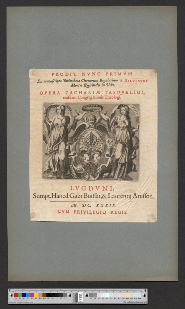 - LVGVNDI, / Sumpt. Haered. Gabr. Boissat, & Laurentij Anisson. / M. DC. XXXIX. / CVM PRIVILEGIO REGIS.