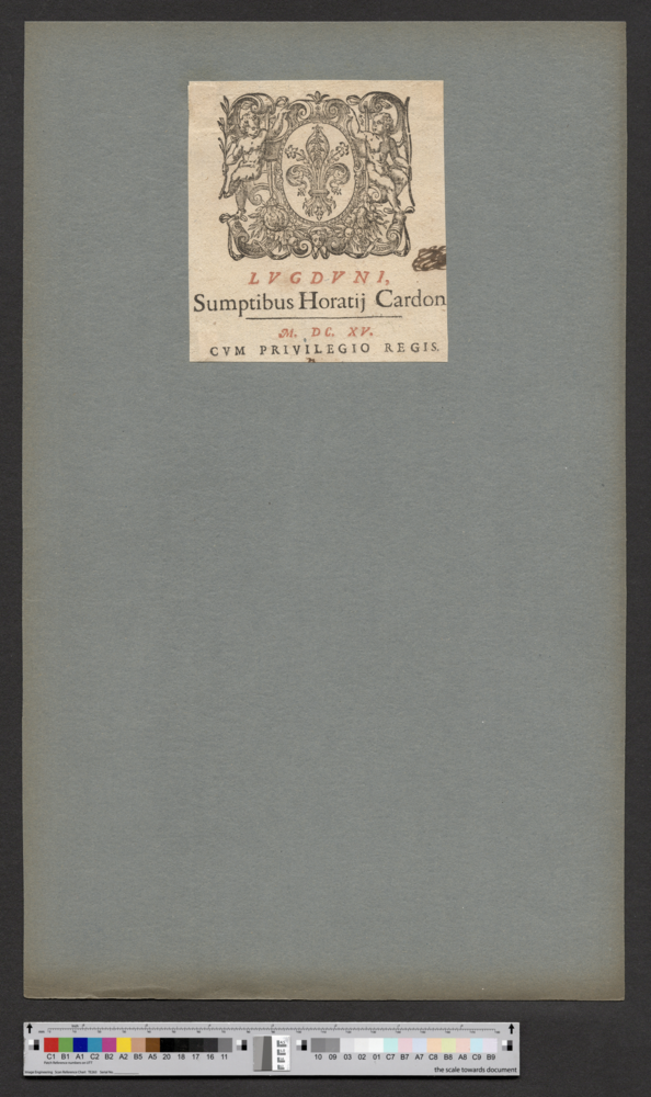 - LVGDVNI, / Sumptibus Horatij Cardon / M. DC. XV. / CVM PRIVILEGIO REGIS.