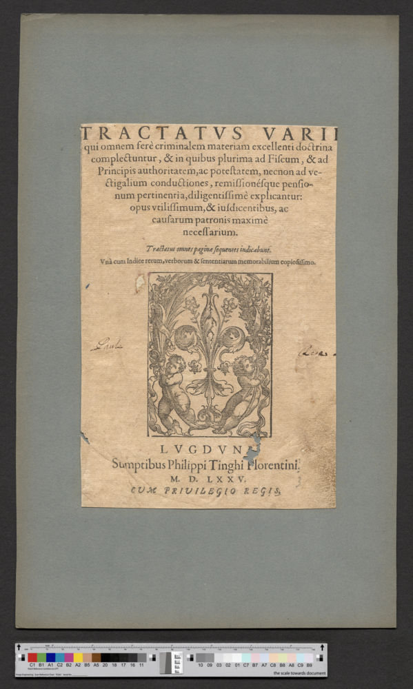 - LVGDVNI / Sumptibus Philippi Tinghi Florentini. / M. D. LXXV. / CUM PRIUILEGIO REGIS.