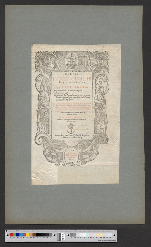 - Titelblatt mit dem Druckerzeichen von Héritiers d'Eustache Vignon und Heinrich Falckenburg