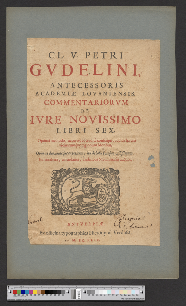 - Titelblatt mit dem Druckerzeichen von Hieronymus Verdussen