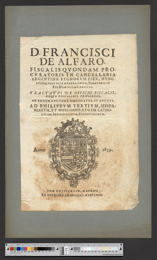 - Anno 1639. / CVM PRIVILEGIO, MATRITI, / EX OFFICINA FRANCISCI MARTINEZ.