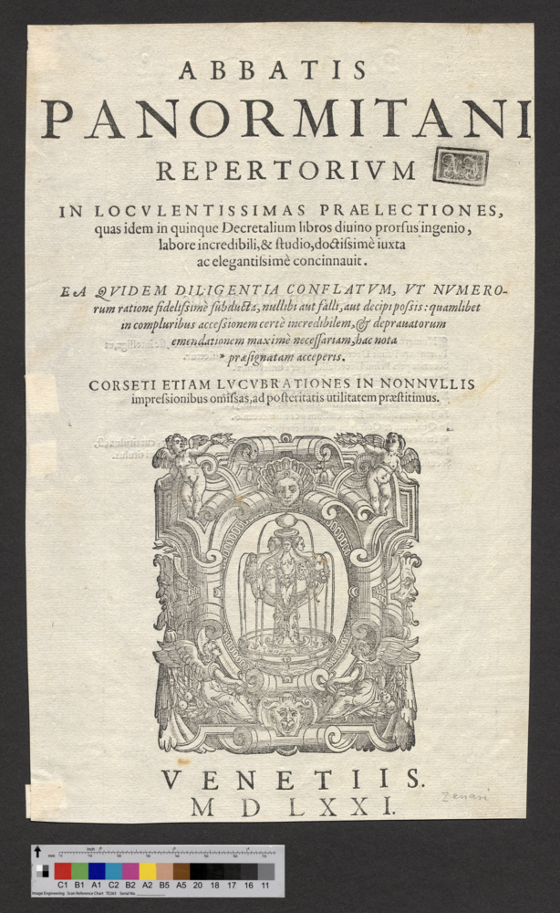 - Titelblatt mit dem Druckerzeichen von der Offizin Al Segno della Fontana