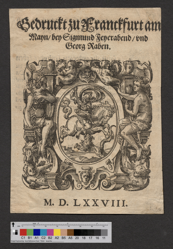- Gedruckt zu Franckfurt am / Mayn / bey Sigmund Feyerabend / und / Georg Raben. / M. D. LXXVIII.