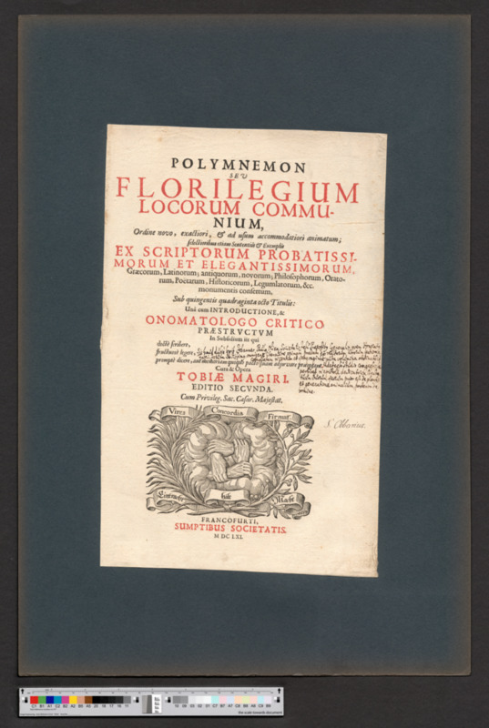 - FRANCOFURTI, / SUMPTIBUS SOCIETAS. / M DC. LXI.