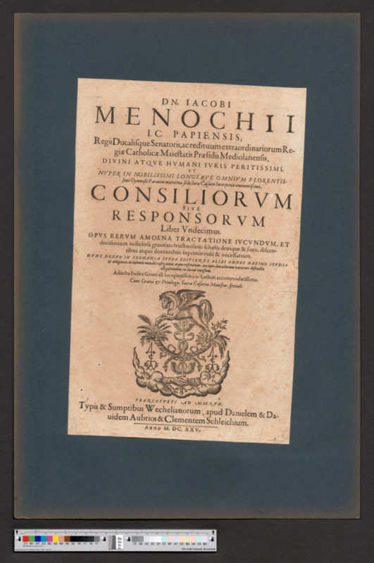 - FRANCOFVRTI AD MOENVM, / Typis & Sumptibus Wechelianorum, apud Danielem & Da- / uidem Aubrios & Clementem Schleichium. / ANNO M. DC. XXV.