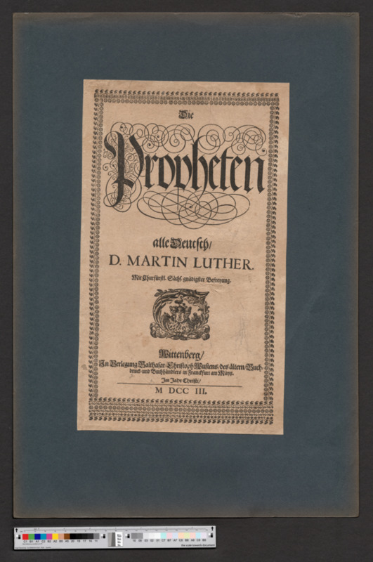 - Wittenberg/ / In Verlegung Balthasar Christoph Wustens/des ältern/Buch= / Druck= und Buchhändlers in Franckfurt am Mäyn. / Im Jahr Christi/ M DCC III.