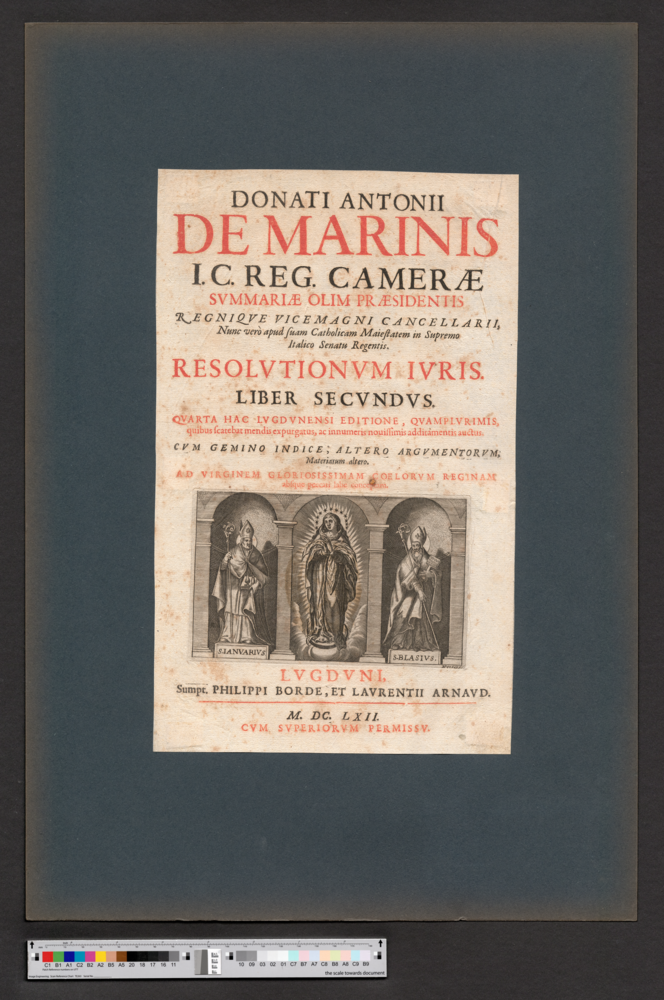 - LVGDVNI, / Sumpt. PHILIPPI BORDE, ET LAVRENTII ARNAVD. / M. DC. LXII. / CVM SVPERIORVM PERMISSV.