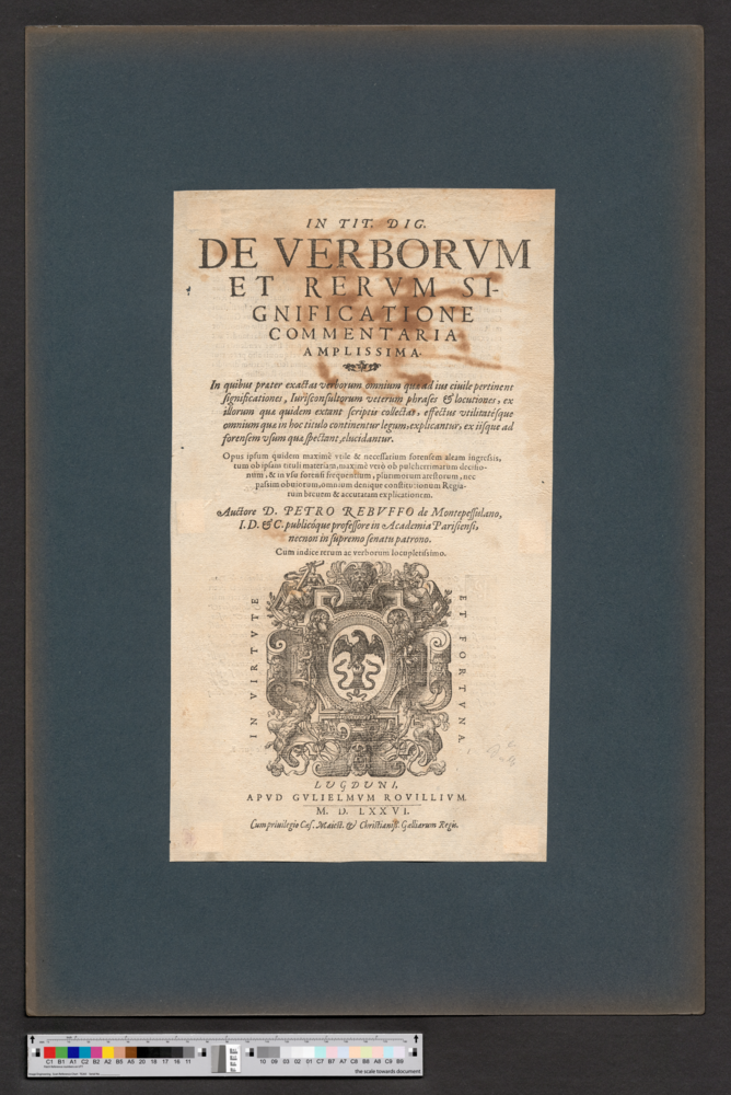- LUGDUNI, / APVD GVLIELMVM ROVILLIVM. / M. D. LXXVI. / Cum priuilegio Caes. Maiest. & Christianiß. Galliarum Regis.