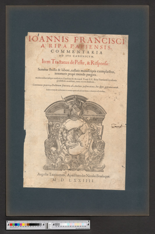 - Augustae Taurinorum, Apud haeredes Nicolai Beuilaquae. / M D LXXIIII.