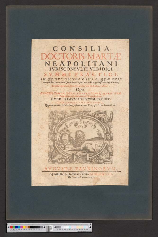 - AVGVSTAE TAVRINORVM. / Apud HH. Io. Dominici Tarini, MDCXXVIII. / De licentia Superiorum.