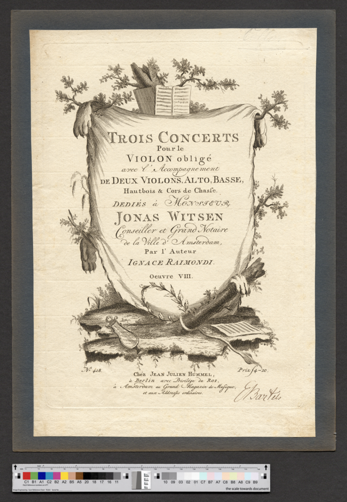 - Chéz JEAN JULIEN HUMMEL, / à Berlin avec Privilége du ROI, / à Amsterdam au Grand Magazin de Musique, / et aux Addresses ordinaires.