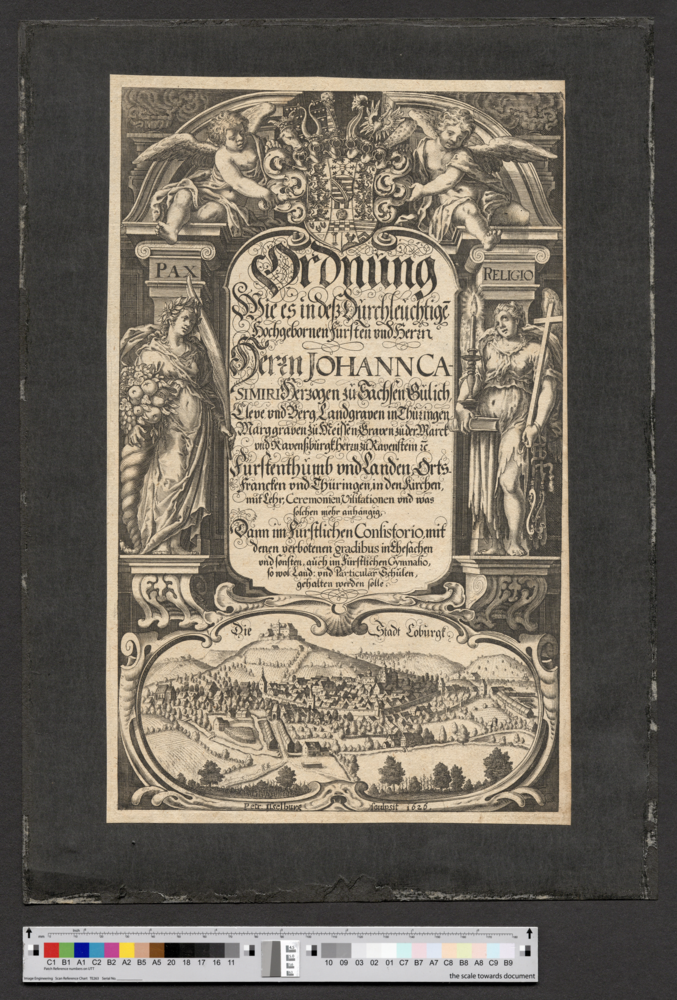 - Inschrift: Die Stadt Coburgt / Petr: Isselburg / sculpsit 1626.
