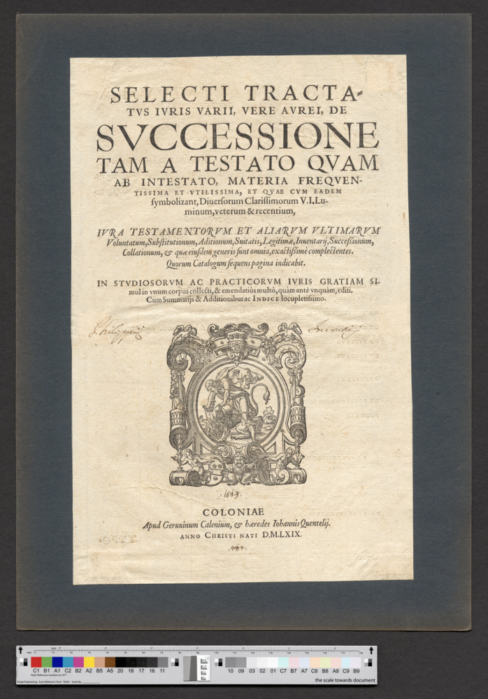 - COLONIAE / Apud Geruuinum Calenium, & haeredes Iohannis Quentelij. / ANNO CHRISTI NATI D.M.LXIX.