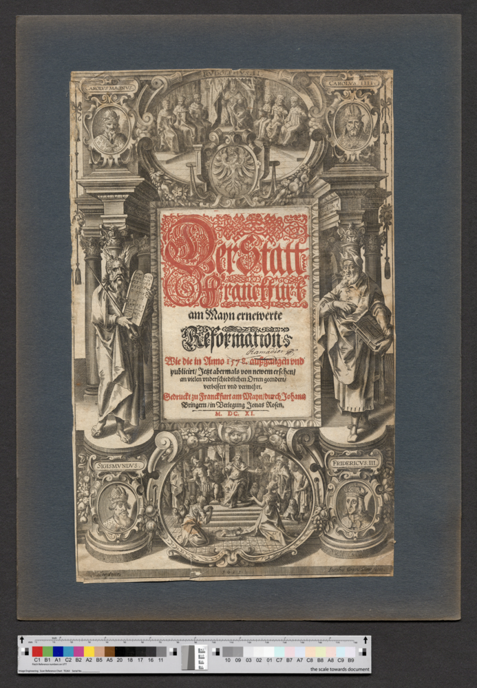 - Gedruckt zu Franckfurt am Mayn/durch Johann / Bringern/in Verlegung Jonas Rosen. / M. DC. XI.