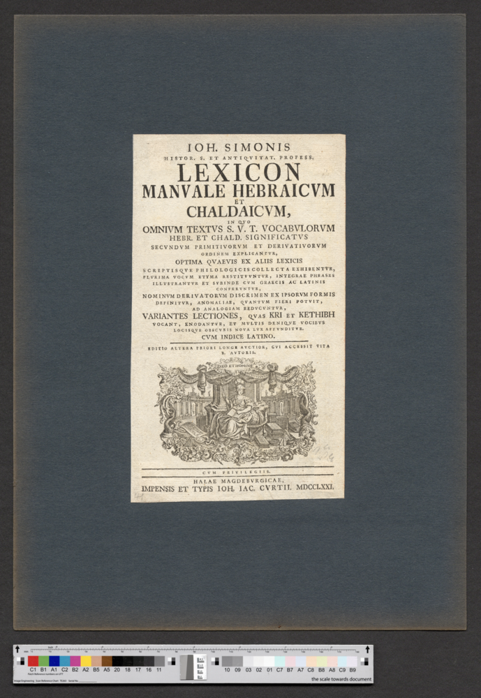 - HALAE MAGDEBVRGICAE, / IMPENSIS ET TYPIS IOH. IAC. CVRTII. MDCCLXXI.