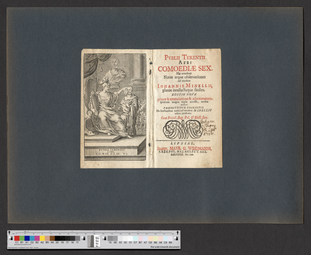 - LIPSIAE, / Sumpt. MAVR. G. WEIDMANNI, / S. REG. POL. MAJ. & ELECT. SAX. / BIBLIOPOL An. 1726.