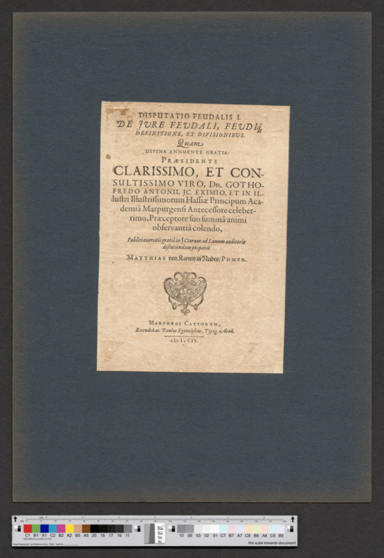 - MARPURGI CATTORUM, / Excudebat, Paulus Egenolphus, Typog. Acad. / clɔ lɔ CIV.