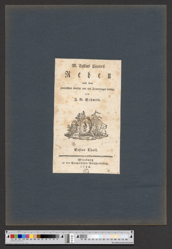- Titelblatt mit dem Druckerzeichen von Stahel'sche Buchhandlung (Würzburg)
