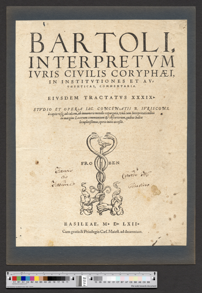 - BASILEAE, M. D. LXII. / Cum gratia & Priuilegio Caes. Maiest. ad decennium.