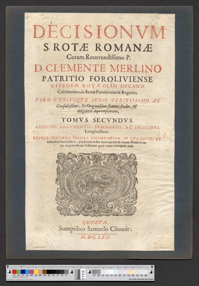 - Titelblatt mit dem Druckerzeichen von Samuel Chouet