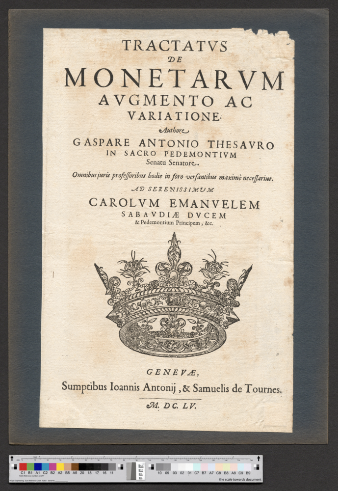 - GENEVAE, / Sumptibus Ioannis Antonij, & Samuelis de Tournes. / M. DC. LV.