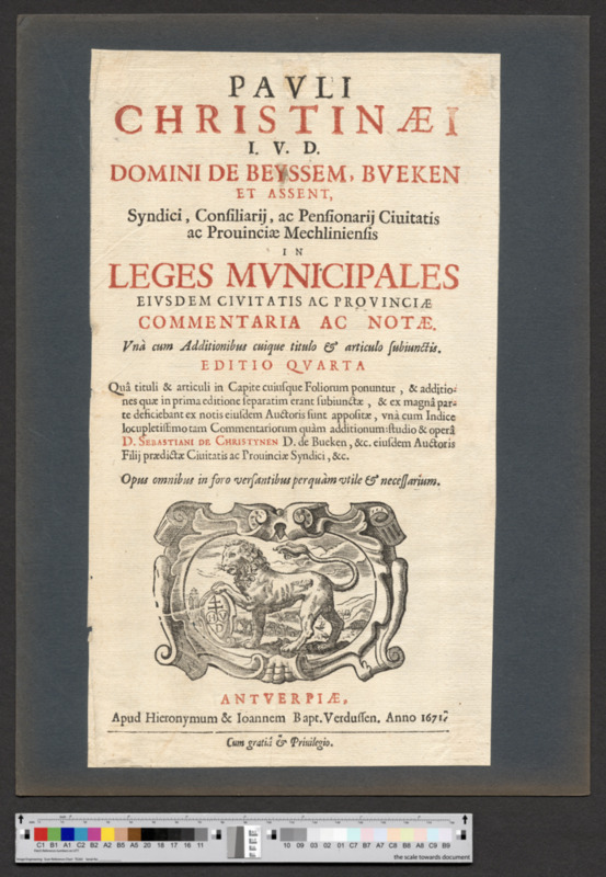 - ANTVERPIAE, / Apud Hieronymum & Ioannem Bapt. Verdussen. Anno 1617. / Cum gratiâ & Priuilegio.