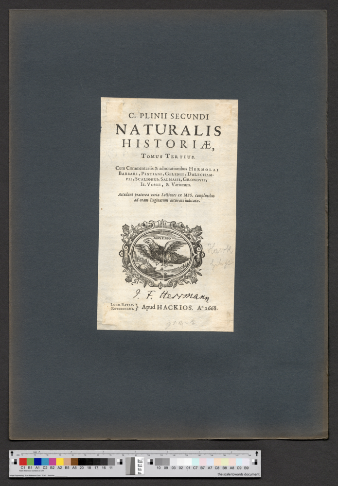 - LUGD. BATAV. / ROTERDAMI. } Apud HACKIOS. A° 1668.