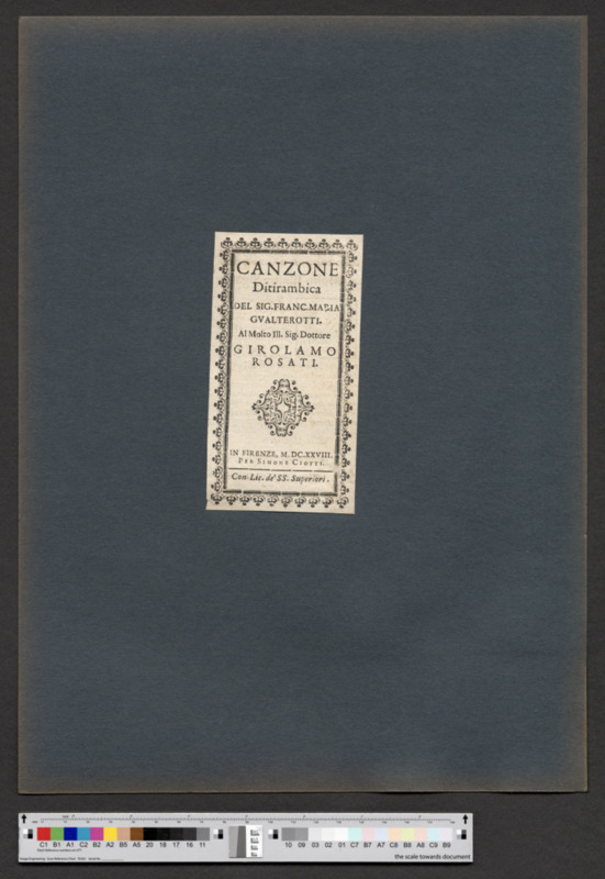 - IN FIRENZE, M. DC. XXVIII. / PER SIMONE CIOTTI. / Con Lic. de' SS. Superiori.