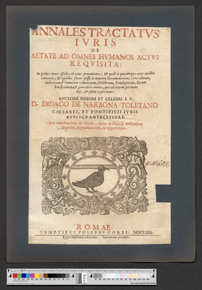 - ROMAE. / SVMPTIBVS IOSEPHI CORBI. MDCLXIX. / Typis Michaelis Herculis. Superiorum permissu.