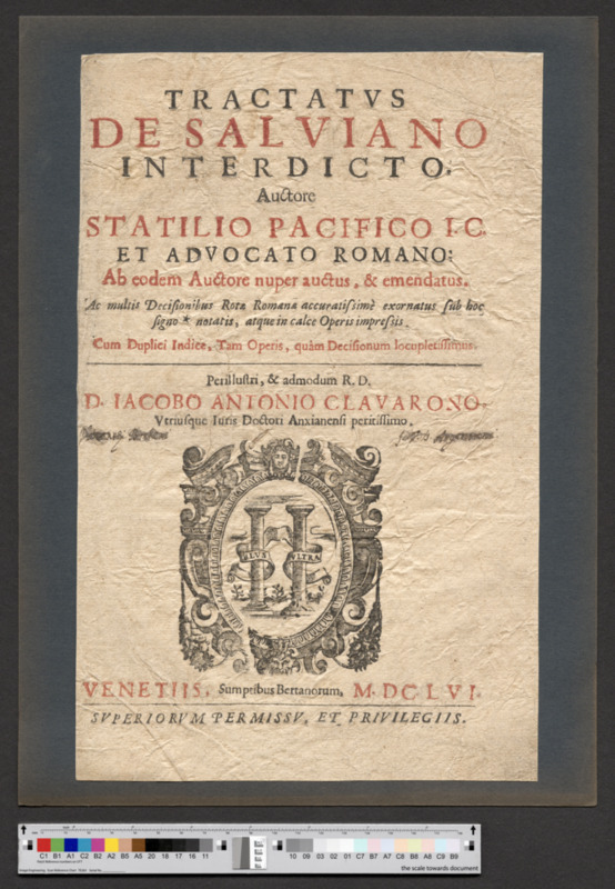 - VENETIIS, Sumptibus Bertanorum, M. DC. LVI. / SVPERIORVM PERMISSV, ET PRIVILEGIIS.