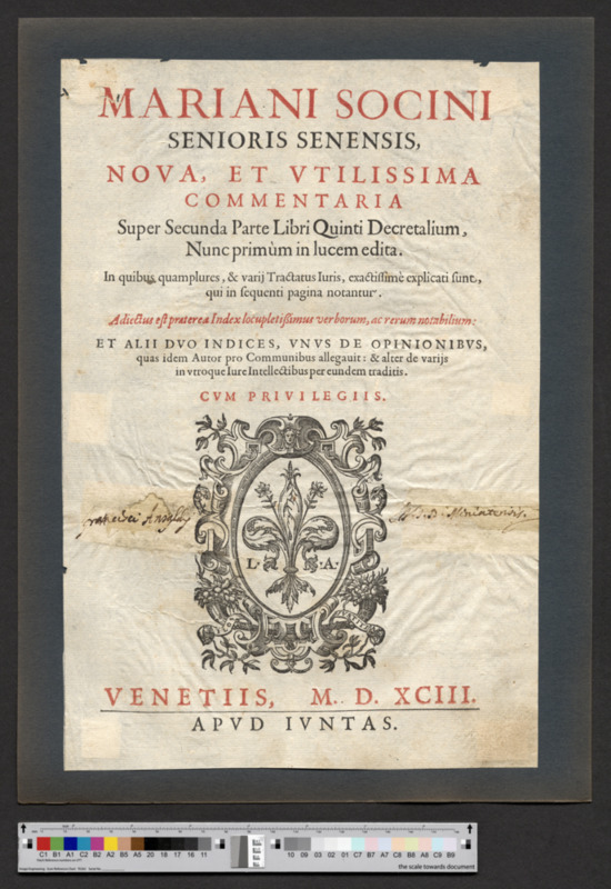 - VENETIIS, M. D. XCIII. / APVD IVNTAS.
