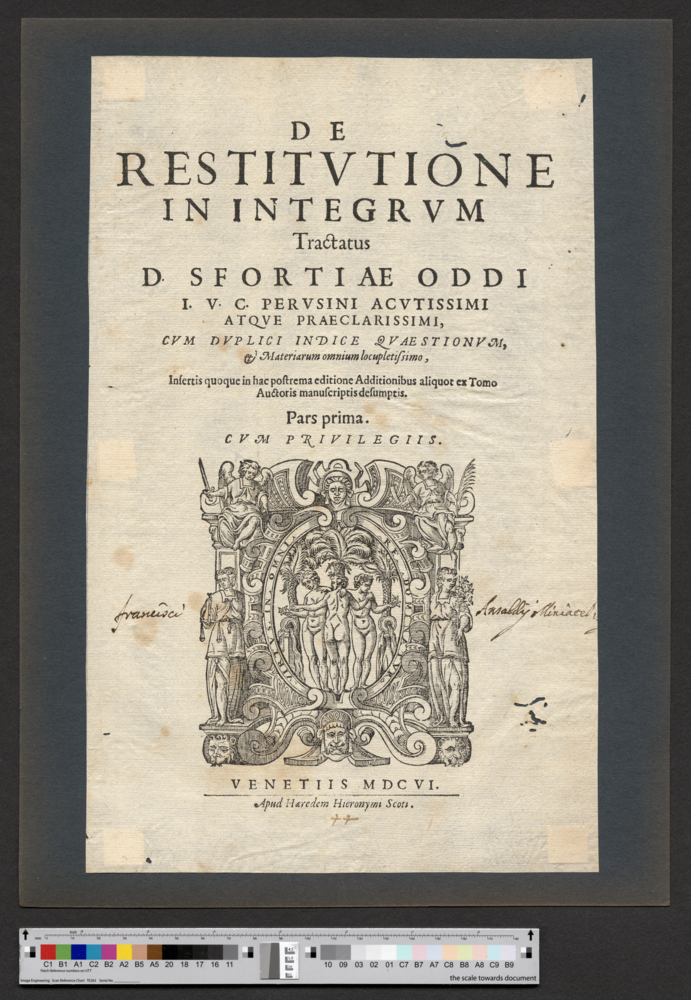 - VENETIIS MDCVI. / Apud Haeredem Hieronymi Scoti.